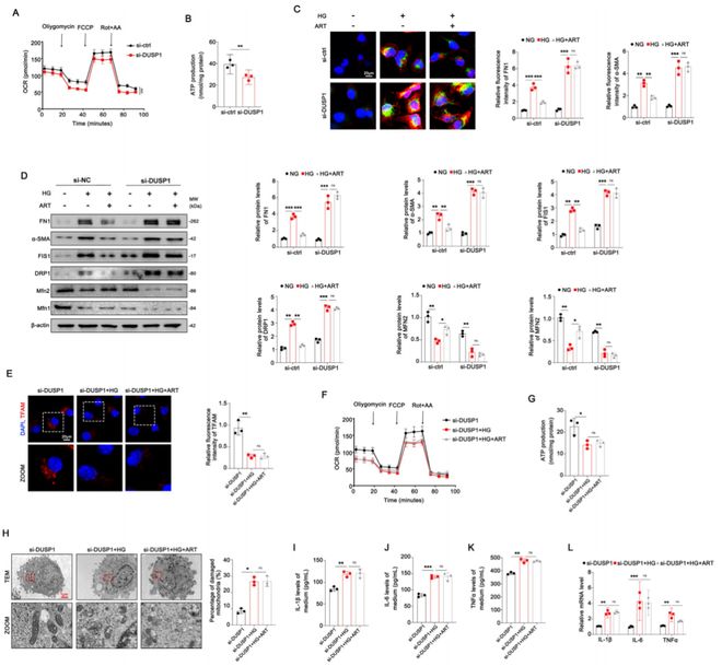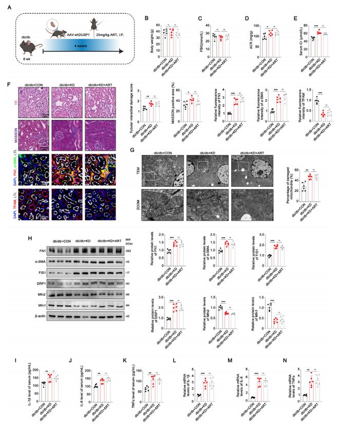 我们的研究表明,ART通过靶向DUSP1在 DKD 中发挥肾保护作用。这种相互作用恢复了TECs中的线粒体功能并减轻了肾纤维化。此外,数据强调DUSP1作为一个潜在的治疗靶点,因其能够调节线粒体稳态和炎症过程。未来的研究应在临床环境中验证这些临床前发现,进一步探索DUSP1靶向策略,并评估联合治疗方法以改善 DKD 患者的预后。