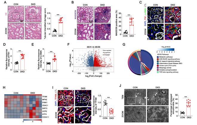 糖尿病肾病(DKD)是糖尿病的主要并发症之一,尽管血糖控制严格,但由于多种致病机制,疾病仍会进展。早期阶段以肾小球和滤过膜损伤为特征,但随着 DKD 进展至中晚期,肾小管萎缩和肾纤维化成为主要表现,最终导致不可逆的肾损伤。在这些晚期阶段,血清肌酐水平升高,反映出肾功能显著下降。在固有肾细胞群中,肾小管上皮细胞(TECs)由于其高线粒体含量,特别容易受到代谢和氧化应激的影响。